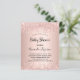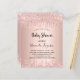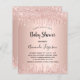 För en babydusch, fira en flicka. En ro-guld tittar metallisk bakgrund. Dekorerad med ro guld, rosa faux glitter droppar, färgdroppstift. Mallar för närmare uppgifter om namn och party i mamma. Namn och texten: Baby Shower är skrivet med ett handskript i stil