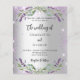 Observera att inbjudan är papper och mycket tunn. Kuvert ingår inte. Om du vill ha mer omfattande inbjudningar (samma design) kan du besöka vår butik. En modern bröllopsinbjudan till snyggten. En faux silver tittar bakgrund med violett faux glitter, sparkler, lavendel blommigt, blommor och eukalyptus greenergiy. Anpassa och lägg till namn och detaljer.