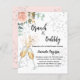 En modern, snyggt och glamorös inbjudan till en Bubly brunch-Möhippa. En vit bakgrund med bubblor, ett par blommor, glasögon, en blomma från ro guld och eukalyptus greenery. Namn är skrivet med ett modernt handskript i stil. Anpassa och lägg till information om party. 1 lakan = 1 inbjudan tryckt kant till kant