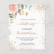 Observera att inbjudan är papper och mycket tunn. Kuvert ingår inte. Om du vill ha mer omfattande inbjudningar (samma design) kan du besöka vår butik. En vit bakgrund som dekoreras med eukalyptus greenery, ro guld och rosa ros, och guldlöv och faux-glitter droppar från guld. Personalisera och barn namn och ceremoniuppgifter. Svart och guldfärgad färgad brev. Baksida: vit bakgrund med droppar av guldfaux glitter