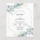 Den här eleganten är en gigantisk och guld-geometrisk inbjudan till bröllop med eukalyptus är perfekt för ett girigt trädgårdsbröllop. Den här romantiska designen har vattenfärgen eukalyptus löv med guld löv och geometriska accenter. Gör inbjudan till dig själv genom att inkludera din namn och all information om bröllop. Om du vill göra ytterligare anpassningar klickar du på länken "anpassa ytterligare" och användor verktyg för avancerad design för att ändra mallen.