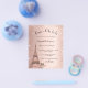 Observera att inbjudan är papper och mycket tunn. Kuvert ingår inte. Om du vill ha mer omfattande inbjudningar (samma design) kan du besöka vår butik. En modern, snyggt och glamorös inbjudan till en artonde (eller någon ålder) födelsedagsfest, paristiskt tema. En faux ro guld-metallisk bakgrund tittar med faux glitter-gnistor och Eiffel torn med några blommor. Namn är skrivet med ett modernt handskript i stil. Anpassa och lägg till information om party.
