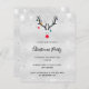 Ett sött, roligt, modernt, minimalistiskt och abstrakt renhuvud. En faux silver metallisk tittar bakgrund och faux glitter stoft. En perfekt för festinbjudan till jul party med vänner, familj eller medarbetare. Anpassa och lägg till information om party. Black brev.