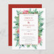 Jul Poinsettia Ram bröllopsinbjudan. Ett budgetmässigt prist mindre än 4,5 x 5,6 tum alternativ. Finns i ett SEMI-GLOSS 110 lb-kort LAGRAR, vilket är standardalternativet (tjockare för inbjudningar), ELLER SATIN AVSLUTAR 80 lb PAPPER LAGRAR (perfekt för bilagor). Kuvert är ett extra som tillval och är något större än det storleka kortet. . Denna festliga utformning med helgdag bröllop i åtanke har en gräns av vintrak med poinsetter och bär, och en enda röd linje runt ord som man lätt kan anpassa. En koordinerande vinterröd bakgrund är på baksidan som du kan byta till ett annat färg om du vill via alternativet Anpassa ytterligare.