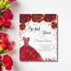 Observera att inbjudan är papper och mycket tunn. Kuvert ingår inte. Om du vill ha mer omfattande inbjudningar (samma design) kan du besöka vår butik. Modern, snyggt och glamorös inbjudan till Möhippa Showr. En vit bakgrund med gnistor, en röd klänning och röd ros, blommigtar. Namn är skrivet med ett modernt handskript i stil. Anpassa och lägg till information om party.
