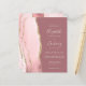 Den lämnat kant i eleganten med en modern bröllopsinbjudan har en rosa vattenfärgsagat gräns som trimmas med faux guld glitter. Anpassadet kombinerar blek handskrift, tryckplåt och kursivt typsnitt på en djup dammig bakgrund i ro. Den omvända sidan har en passande och guld agate-design.
