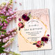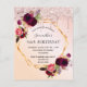Observera att inbjudan är papper och mycket tunn. Kuvert ingår inte. Om du vill ha mer omfattande inbjudningar (samma design) kan du besöka vår butik. På framsidan: En inbjudan för en 50-årig, 50:e (eller någon ålder) födelsedagsfest. Ro guld, rosa färgad ombre-bakgrund med faux guld geometric ram. Dekorerad med mörkens lila och burgundblommor, ro och boho stil fjädrar. Faux ro guld glitter droppar. Mallar för uppgifter om namn och party. Namn är skrivet med ett handskript stil, grått färgad brev. Tillbaka: Ro guld, rosa ombre färgad bakgrund.