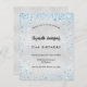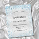 För elegant 21:a födelsedag (eller någon annan ålder). En faux silver tittar bakgrund. Dekorerad med blå faux glitter, gnistor. Anpassa och lägg till information om namn, ålder och party. Namn är skrivet med ett handskript i stil. 1 lakan = 1 inbjudan