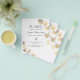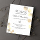 Observera att inbjudan är papper och mycket tunn. Kuvert ingår inte. Om du vill ha mer omfattande inbjudningar (samma design) kan du besöka vår butik. En vit bakgrund som dekorerats med gyllene eucalyptus, sprickor. Anpassa och ange namn och ceremoni. Bakåt: guldbakgrund.