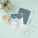 Budgetera inbjudningskort för möhippa med lyckad utformning. Till överkomligt pris har pappra textmallar i handskrivet och tryckt typsnitt. Exempelformuleringen är till för en möhippa och är lätt att ändra för varje händelse. Realistiska blommor med blå grönt dekorerar den vita pappra ytan.