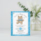 Digitalt färgad och hand plockade söt nalle-grafik för babyduschinbjudan. Inslag, målat av Valarie Wade. Perfekt om året när som helst. Justerbar text. Blått polka-nalle... Det är en pojke som kallas babydusch. Klassisk