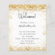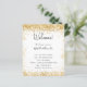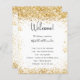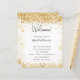 Ett modernt program, elegant bröllop, tidslinje. En vit bakgrund som dekoreras med faux guld glitter damm. Anpassa och lägg till information om namn och bröllop. Svart färgad brev. Om du har mer text kan du minska radavståndet.