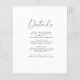 Detta minsta inmatningskort är perfekt för elegant bröllop. Utformningen har ett enkelt minimalistiskt stil. Anpassa det här detaljkortet med din mottagningsinformation och inkludera även bröllop webbplats adress! BUDGETEN ÄR PAPPER! ***UPPGRADERA FÖR EN TEKNIKER-PAPPER. INGA ENVELOPES INKLUDERAS.** FÖR KORT LAGRAR ELLER TEKNIKKORT, klicka på den här länken > https://www.zazzle.com/z/aygflpoh?rf=238187168869594910 ELLER överför designen till ett svarskort.