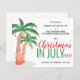 Budgetjul i juli Sommarinbjudan. Låt oss fira jul i juli med party! Familjen inbjudan och vänner till er jul träffade firande med denna inbjudan till roligt med hand plockade handflatan träd som dekorerats med ljus. Anpassa de här inbjudningarna till dig och njut av roligten! Teckning © Michele Davies.