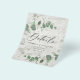 Budgetkort för vackert delikat eukalyptus foliage bröllop. En del av en modern samling. Modern rustik stallhuslinnans ljusa grått tvättat bakerdesign av trä.