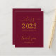 Fira i stil med detta enkla budgetvänliga tack till studenten. Utformningsfunktionerna "Klass 2023" i guld-typsnittet på en ren burgundisk maronbakgrund. Enkel att anpassa. Hämta din i dag!