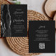 Den här elegantens lämnat kant har en modern bröllopsinbjudan med en svart vattenfärg som agerade i gräns som trimmas med faux silver glitter. Anpassadet kombinerar skriptet silver grått och sans serif typsnitt på en svart bakgrund. Den omvända sidan ger plats för bröllop-information på en solid svart bakgrund, tillsammans med en QR-kodgäst som kan söka på webbplatsen och OSAN, vilket sparar kostnaderna för utskrift och utskick av separat OSA kort.