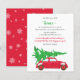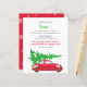 Budget Cute Julgran Car Helgdag Flytta Annons Vi har flyttat Postcard med Red Vintage bil och Decorated Julgran ovanpå med snöflingor flurries tillbaka