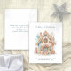 Budget Whimsical Boho Gingerbröd House God jul. En budget prisa mindre 4,5-tums x 5,6-tums halvglödande kort, ungefär som ett vykort. Ett fritidshem i stil i klippor, nyp och vinterblått. Enkel med hälsning och namn på båda sidor.