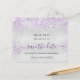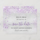 Ett girigt och trendig Spara datum för en Quinceañera, 15:e födelsedagsfesten. En modern faux-metallisk tittar i silver som dekoreras med lila faux glitter stoft. Anpassa och lägg till datum och namn/ålder. Black and lila färgad brev. Texten: Spara datumet skrivs med ett stort trendig-handskript i stil.