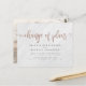 Yikes! Oförutsedda omständigheter är svåra att planera för, men med dessa senareläggningskort i bröllop kan du enkelt låta dina nära och kära veta! Med en vit marmorbakgrund. "Planbytet" i ord visas överst i ett faux-folie av ro guld med söta virvelar. I stället finns det en fotomall som du kan ersätta med en egen. Som en del av budgetvalet här om Zazzle, bjuder dessa in kom i begränsada storlekar och pappra lagrar. Om du behöver ett annat storlekt eller pappert lagrar kan du överföra den här designen till ett standardformat 5x7 med hjälp av verktyg för designöverföring för fler alternativ.