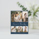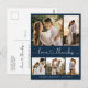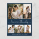 Budgeterad Elegant Heart-teckensnittsskript Bröllop 5 Photo Collage (tillkomligt tack) - ditt kort i Navy Blue and White (blå och vit). Snyggt, minimalistisk bröllop-kortmall med fem (5) rasterfotokollage på framsidan och ett (1) foto på baksidan. "Kärlek och tack" text i ett kursivt, handskrivet kalligrafiskt, sött hjärtteckensnittsskript med dekorerat svan. Anpassa med ditt namn och tack för meddelandet. Om du behöver hjälp eller matcha objekt kontaktar du designern!