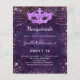 För en elegant Masqueraad, 16:e födelsedag. En lila bakgrund mönster. Dekorerad med damm från ro guld faux glitter och maskerad mask. Anpassa och lägg till information om namn, ålder och party. Namn är skrivet med ett handskript i stil