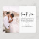 Budgetera Bröllop Tack för att du har ett foto på framsidan och baksidan. Tack-korten innehåller en modern handskriven kursiv skripttypografi som är elegant, enkel och modern till använda efter att du bröllopsdag firande.
