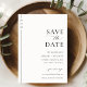 Markera dina kalendrar med vår minimalistiska svarta och vita Bröllop spara datum. Den här prisvärda, minimalistiska designen belyser din speciella dags detaljer i en svart och vit elegant. Perfekt för ett sofistikerat firande, det anger tonen med klassisk elegans, byggande förväntan och upphetsning för det kommande bröllop.
