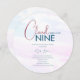 Bron ligger på molnet nio budgetvänliga inbjudningskort för möhippan med mjuk blått och rosa abstrakt är struktur med chicens moderna typografi. Den här produkten är lätt att redigera. Om du behöver hjälp med anpassningen eller behöver fler produkter från den här samlingen, meddela mig via Zazzle.