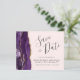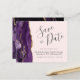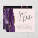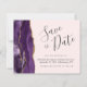 Den här eleganten sparar datumkortet med en lila vattenfärgsagat gräns som trimmas med faux guld glitter. Anpassadet kombinerar handskriftsskript för kol-grått, kopparplåt och kursivt typsnitt på rosa. Den omvända sidan har en matchande lila- och guld-agate-design.