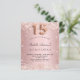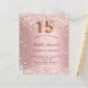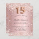För en elegant Quinceañera, 15:e födelsedagsfesten. En övertoningsbakgrund för rosa. Dekorerad med damm från ro guld faux glitter. Anpassa och lägg till information om namn och party. Namn är skrivet med ett handskript i stil. Nummer 15 skrivs med ett stil-teckensnitt med ballong.