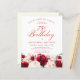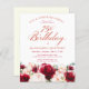 Röd ros och människor med rosa är inkvarterade i mörk grönt löv på denna vackra och unika födelsedagsinbjudan.