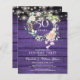Med en känslig blommigt för vattenfärg, gröngarland och ljus för söt på en lila träpanelbakgrund, kan den här chicen, den stora överraskningen party 50:e bröllop-årsbudgetinbjudan för speciellare vara personlig med din guldårsinformation. Den omvända sidan har en matchande blommigt- och trädgårdsmark som fyller årsdagen data i elegant, vit text på träpanelernas bakgrund. Designad av Thisisnotme©