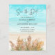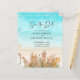 Kommer ni att hålla er ceremoni i bröllop i söder eller kanske på stranden? Vår färgfulla budget Spara datumkortet hjälper dig att se scenen med en boho-blommigt arrangemang av pampasgrästalkar i skuggor av guld, ro guld och grönt på en sandstrand. Textillustrationen "Spara datum" visas i ett skript med elegant och all annan text på kortets framsida och baksida kan enkelt personlig av dig på mallen.