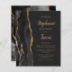 Den här elegantens lämnat kant har en modern bröllopsinbjudan med en svart vattenfärg som agerade i gräns som trimmas med faux guld glitter. Anpassadet kombinerar kalligrafipenselskript för guld-färgad och sans serif typsnitt på en svart bakgrund. Den omvända sidan har en matchande svartvit och guld agate-design.