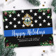 Skicka God jul hälsning till vänner, företag, medarbetare i tillsatta lagar och er gemenskap med detta unika jullkort för Thin Blue Line Police Department - American Flagga in Police flagga färg, modern black and blue with holly lövs and bär. Anpassa med polisavdelningens logotyp, meddelande och avdelning. COPYRIGHT © 2020 Judy Burrows, Black Hund Art - Med alla Höger reserverade. Budgetpolisavdelningen Jul Thin Blue Line Postcard