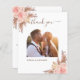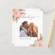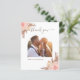 Ett modernt bröllop tack fotokort. Vit bakgrund. Dekorerad med rosafärgade och roséguld blommor och prydnadsgräs. Personifiera och lägg till 2 av dina bröllopsfoton och tackkort på baksidan