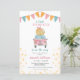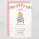 Denna budget för flickor höst möhippa inbjudan design är gjord med en vintage rosa akvarell bil i kombination med höst pumpa dekorerad med en rosa rosett och en flerfärgad girlang av flaggor, kompletterad med ett gyllene prickmönster och ljus saftig text en liten pumpa. Baksidan av inbjudan är turkos med ett mönster av gyllene prickar.
