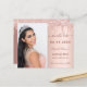 Ett foto Spara datumet för en Quinceañera-födelsedag på framsidan: Lägg till ett storlekt foto för lodrät. En elegant ro guld, en övertoningsbakgrund färg, dekorerad med faux glitter drops, färgdroppstift. Anpassa och lägg till namn och detaljer. Tillbaka: Mediesymboler för social, lägg till dina konton, lägg till din egen QR-kod till ditt Instagram-konto eller din webbplats.