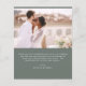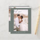 Budgetsaldo Grönt Bröllop - tack för att du har ett foto på framsidan och baksidan. Tack-korten innehåller en modern handskriven kursiv skripttypografi som är elegant, enkel och modern till använda efter att du minimalistiskt enkelt bröllopsdag firande.