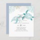 Bold teal, turkos och blåhavs Turtles och tropiska löv finns med på detta moderna havs, kallas bröllopsinbjudan eller sparar datumartikeln. Textmall fält på båda sidor säkerställer att du kan lägga till all ytterligare information, inklusive osa, presentregister, mottagningsinformation, instruktioner och annat.