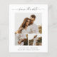 Ett budgeterat Elegant Script 3 Photo Bröllop spara datum Card med en enkel modern design med fotokollage på framsidan. På baksidan finns text som du vill ha mer information om. Klicka på knappen Anpassa för att anpassa den här designen med dina foton och detaljer.