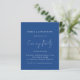Budgetskript Bröllop kväll Party Mid Blue. Ett ekonomiskt alternativ i BUDGET på en mindre storlek på 4,5 x 5,6 tum (110 lbs vikt), som är av samma tjocklek som ett vykort (är dock inte lämpligt för använda som vykort). OBSERVERA ATT DET FINNS EN inbjudan per lakan. En handskriven stil för Evening Party och resten av texten kan du enkelt anpassa. Färgen text och bakgrund kan ändras till valfri eller valfri text med hjälp av alternativet Anpassa ytterligare.