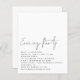 Ett ekonomiskt alternativ i BUDGET på en mindre storlek på 4,5 x 5,6 tum (110 lbs vikt), som är av samma tjocklek som ett vykort (är dock inte lämpligt för använda som vykort). OBSERVERA ATT DET FINNS EN inbjudan per lakan. Elegant Script Bröllop Evening Party Inbjudan. Huvudet är i en informell handstil stil med detaljerna under och mycket tomt utrymme på en kvadratisk form för en contemporary stil. Anpassa texten till dina egna detaljer.