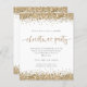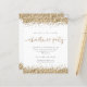 Guld Glitter skriker jul i Party Inbjudan. Ett budgetmässigt prist mindre än 4,5 x 5,6 tum alternativ. Finns i ett SEMI-GLOSS 110 lb-kort LAGRAR, vilket är standardalternativet (tjockare för inbjudningar), ELLER SATIN AVSLUTAR 80 lb PAPPER LAGRAR (perfekt för bilagor). Kuvert är ett extra som tillval och är något större än det storleka kortet. Glam stil för din Julfest med guld faux glitter som gränsar till överkant och grund kant på båda sidor och i ett handskriftsskript för stil för tillfälle typografin. Anpassa texten till dina egna detaljer.