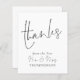 Budgetskript Nya tack, fru Bröllop! Ett budgetmässigt prist mindre än 4,5 x 5,6 tum alternativ. Finns i ett SEMI GLOSS 110 lb-kort LAGRAR, vilket är standardalternativet (rekommenderas för inbjudningar), ELLER SATIN AVSLUTAR 80 lb PAPPER LAGRAR (perfekt för bilagor). Kuvert är ett extra som tillval och är något större än det storleka kortet. Tack, och herr och fru står i ett handskriftsskript för stil på framsidan och resten av texten på vardera sidan som du lätt kan anpassa med namn, och ert tack till era gäster. Om du ser det i svartvitt kan du ändra till valfri färg genom att anpassa ytterligare alternativ.