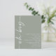 Budgeterat minimalistiskt skript Oh Boy Sage Baby Shower. Ett budgetmässigt prist mindre än 4,5 x 5,6 tum alternativ. Finns i ett SEMI GLOSS 110 lb-kort LAGRAR med liknande tjocklek som ett vykort. Det finns EN per lakan. Contemporary stil med Oj Baby roterade och till lämnat sida och anpassa resten av texten till dina egna detaljer.
