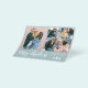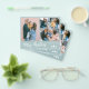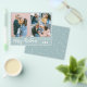 Budget Modern, enkel 4 Photo Collage God jul Helgdag Penselskript Papper Flyer i dammig blå. Det här snygga, minimalistiska, fyra (4) familjekortet för foto har en söt fotokollage och säger "God jul" hälsning är skrivet i en handskriven helgdag av penselskript. På baksidans snöbakgrund. Hälsningskort för söt till din familj och dina vänner på Winter-Julhelgen.