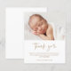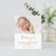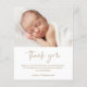 Detta moderna fotobarn dop tackkort har handskrivna kalligrafi skript tack konst som är flyttbar och som du enkelt kan ändra färgen på, ett horisontellt foto och redigerbar text. Klicka på redigeringsknappen för att anpassa denna design.